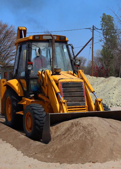 Equipped with a front bucket and rear excavator arm. Ideal for digging, trenching, and material handling.